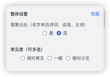 需要”玄学起名“、”文字限制“、”名字发音“等等功能。